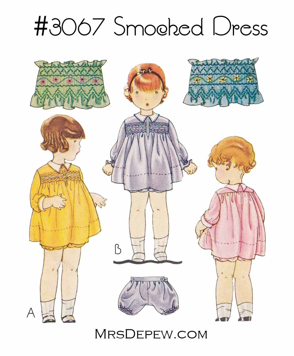 Vintage Sewing Pattern Girls 1930s Smocked Dress Bloomers 3067 Instant Download